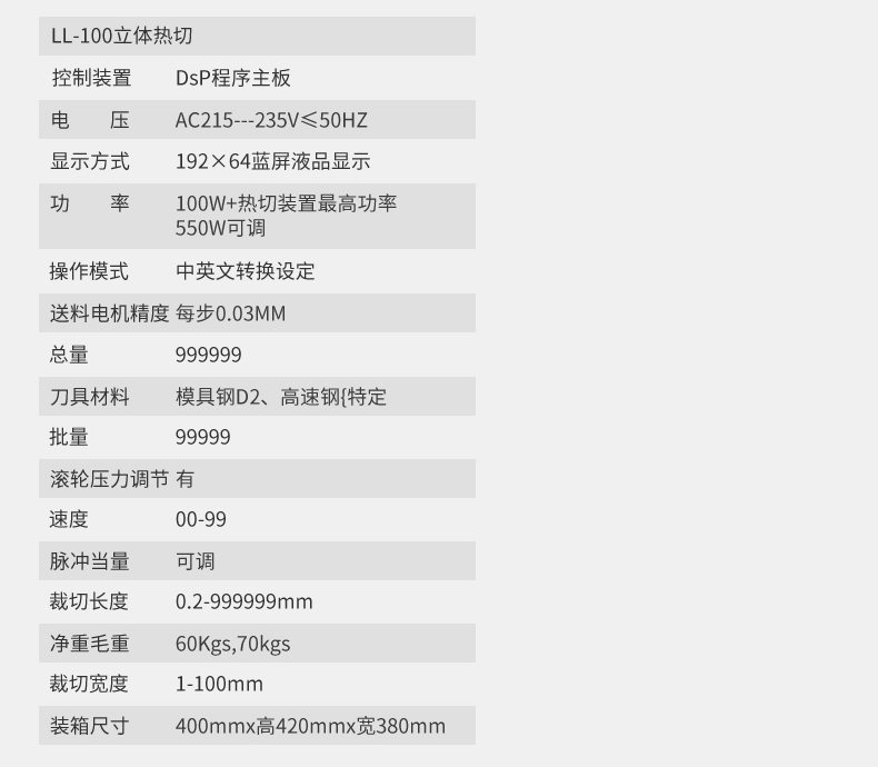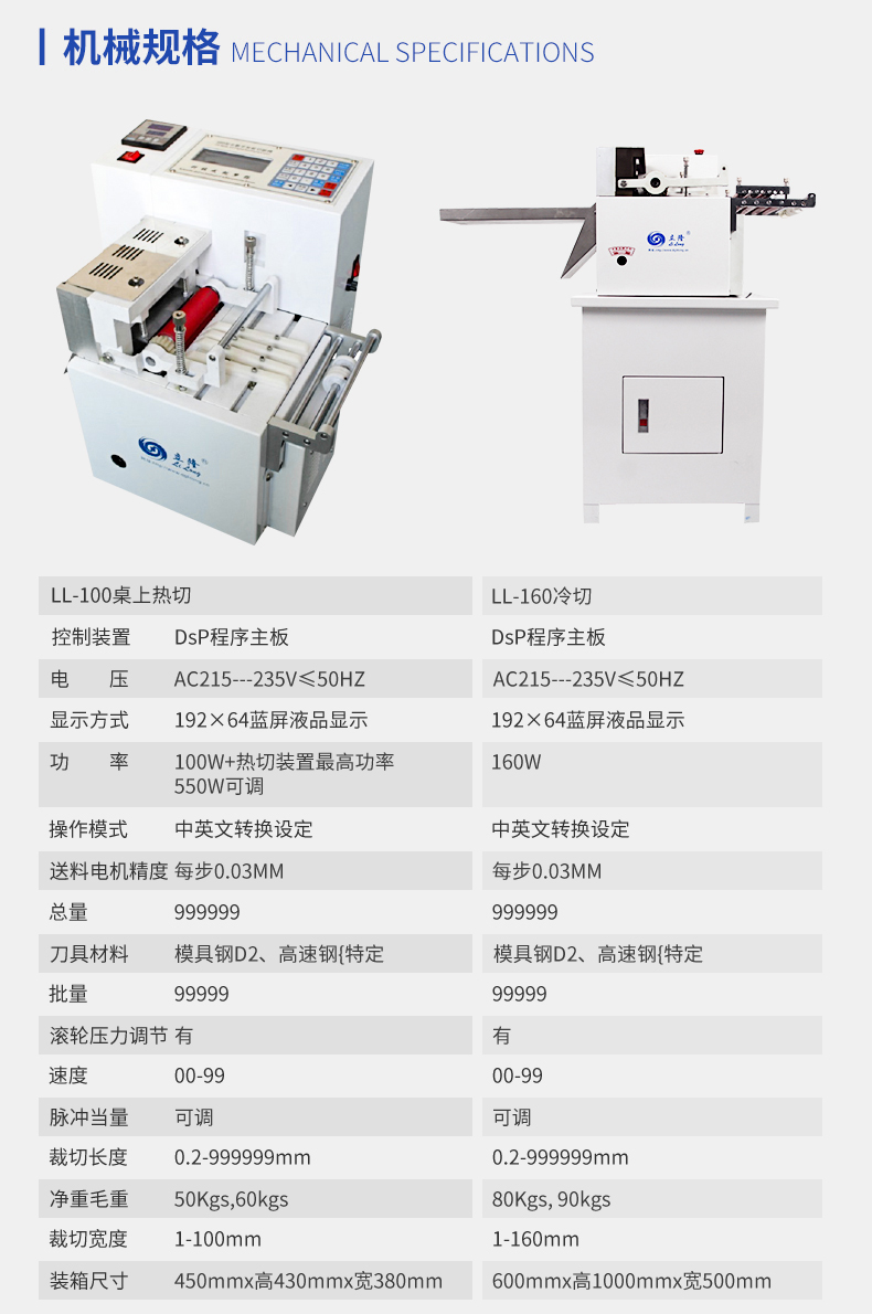 LL-100桌上全數(shù)字智能切斷機(熱切型)/(冷切型) 產品說明: 本機采用全數(shù)字智能控制裝置,按鍵操作,同時可任意設定切斷長度/數(shù)量、送料速度、且裁切精度準確、耗損少、機型設計符合人體工學原理操作簡單,廣泛適用于織帶、拉鏈、...